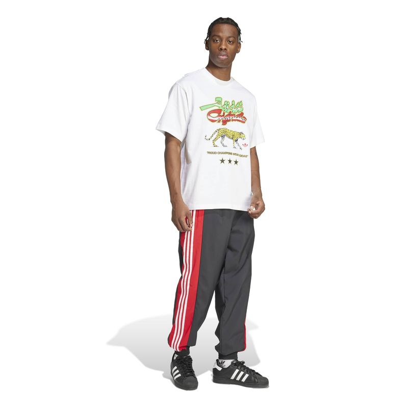 En los 90, el mundo vio cómo las culturas del streetwear y del boxeo se fusionaban. Un guiño a esa época decisiva, esta camiseta adidas luce un estampado de leopardo en la parte delantera, complementado con otros estampados y colores que le dan un toque urbano. La camiseta tiene un corte holgado y cuadrado, con hombros ligeramente caídos, cuello más ajustado y un largo ligeramente más corto de lo habitual. Está confeccionada con un tejido de punto liso grueso con una sensación premium, ideal para lavar a mano.